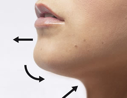El menton debe tener una proyeccion adecuada y proporcionada con el resto de la cara, si no es asi se puede apreciar la cara, larga, corta, retraida etc, se realiza la cirugia ya sea colocando una protesis de silicon fija a la estructuras del area o bien cortando el hueso del menton y avanzandole fijado con placas y tornillos de titanio.