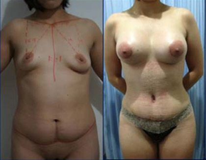 En caso de que la mama de la paciente se encuentre por debajo de su ubicación adecuada para que presente una proyeccion y forma adecuada, se debera realizar un procedimiento de levantamiento o pexia mamaria, existen varias tecnicas, lo cual resultara en diferentes tipos de cicatrices postoperatorias dependiendo de la tecnica utilizada.